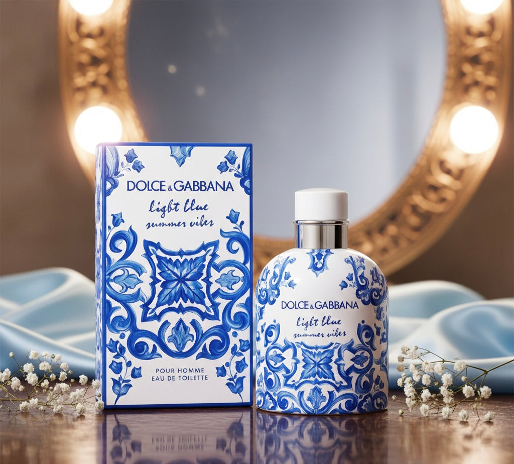 Discover the fresh energy of Italian holidays with the limited edition Light Blue Summer Vibes Pour Homme. This fragrance captures the invigorating freshness of Mediterranean citrus wrapped in a blend of aromatic and woody notes.